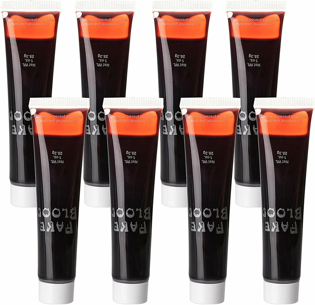 - Including 8 Tubes 1 oz. Fake Blood Tube. Our fake blood features an incredibly vibrant blood red color that looks and flows like the real thing.