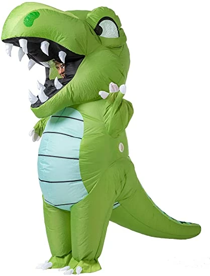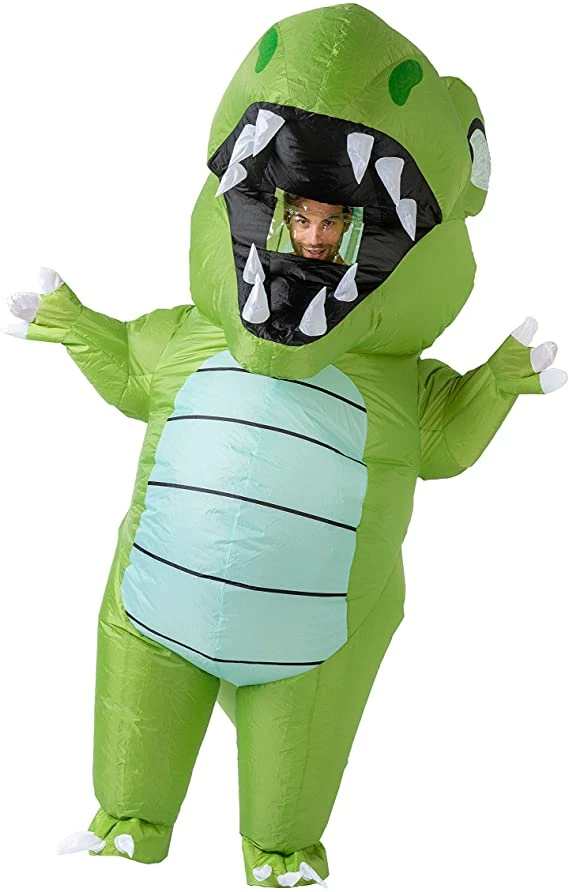 - Includes one Inflatable Animated Green Dinosaur Costume, and an air pump.