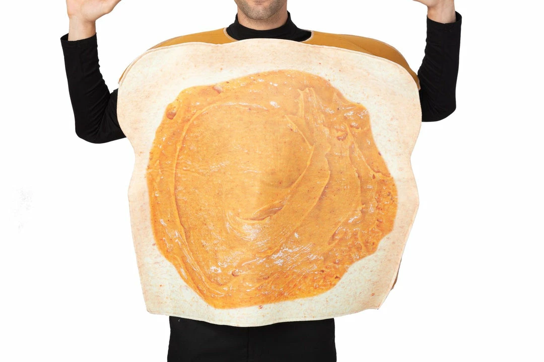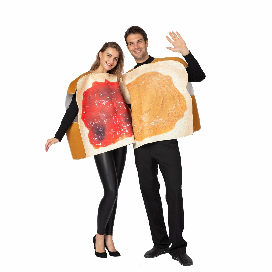 - Funny Adult PB&J Halloween Costumes for Women and Men includes Realistic Jelly Printed on the Front Foam Tunic and Peanut Butter Printed on the Front Foam Tunic.