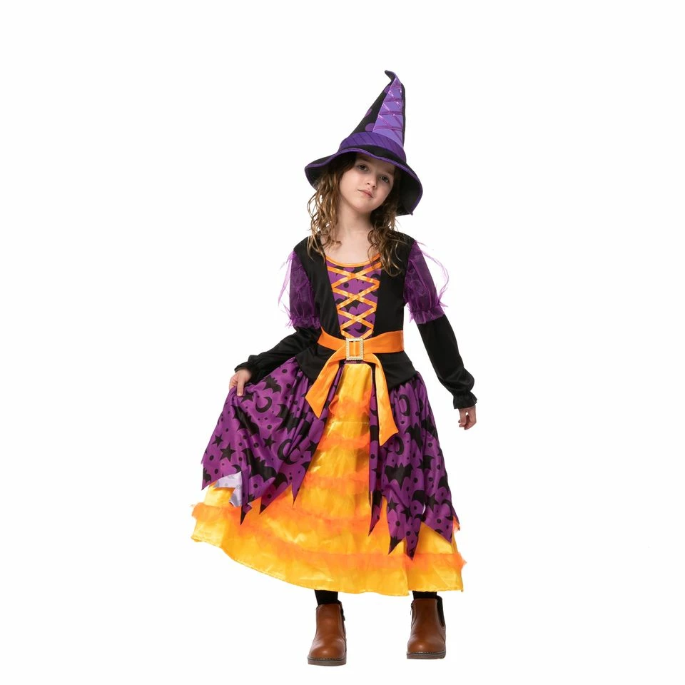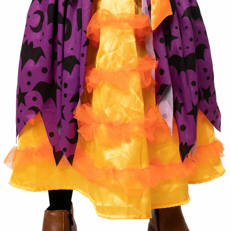 - Our Bat Witch Costume is an orange and black costume dress with a light-up skirt that comes with a matching hat.