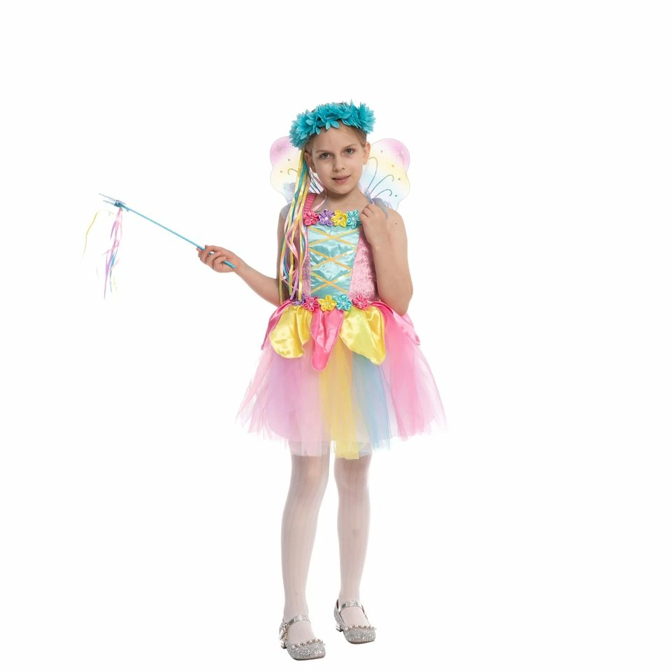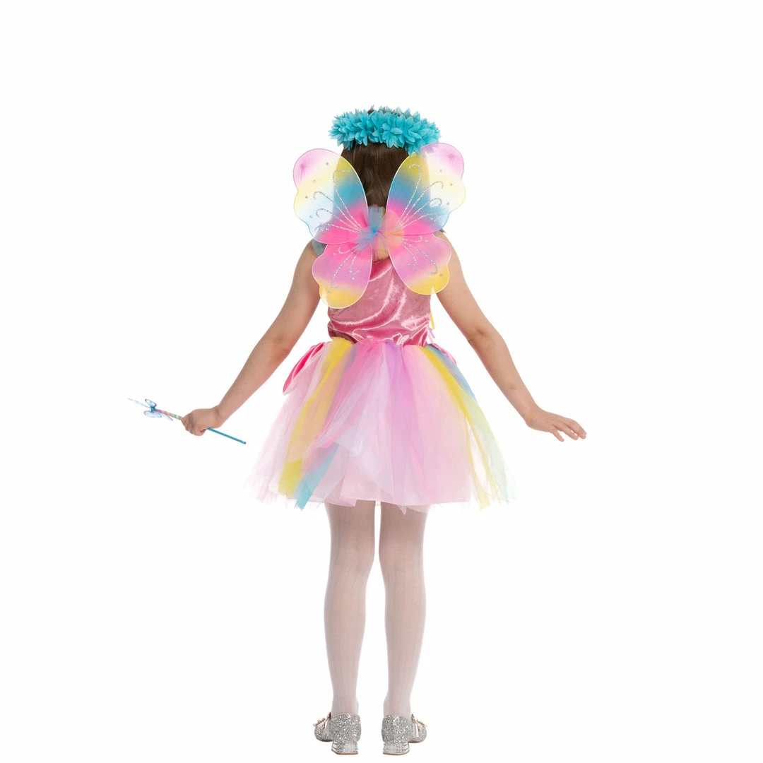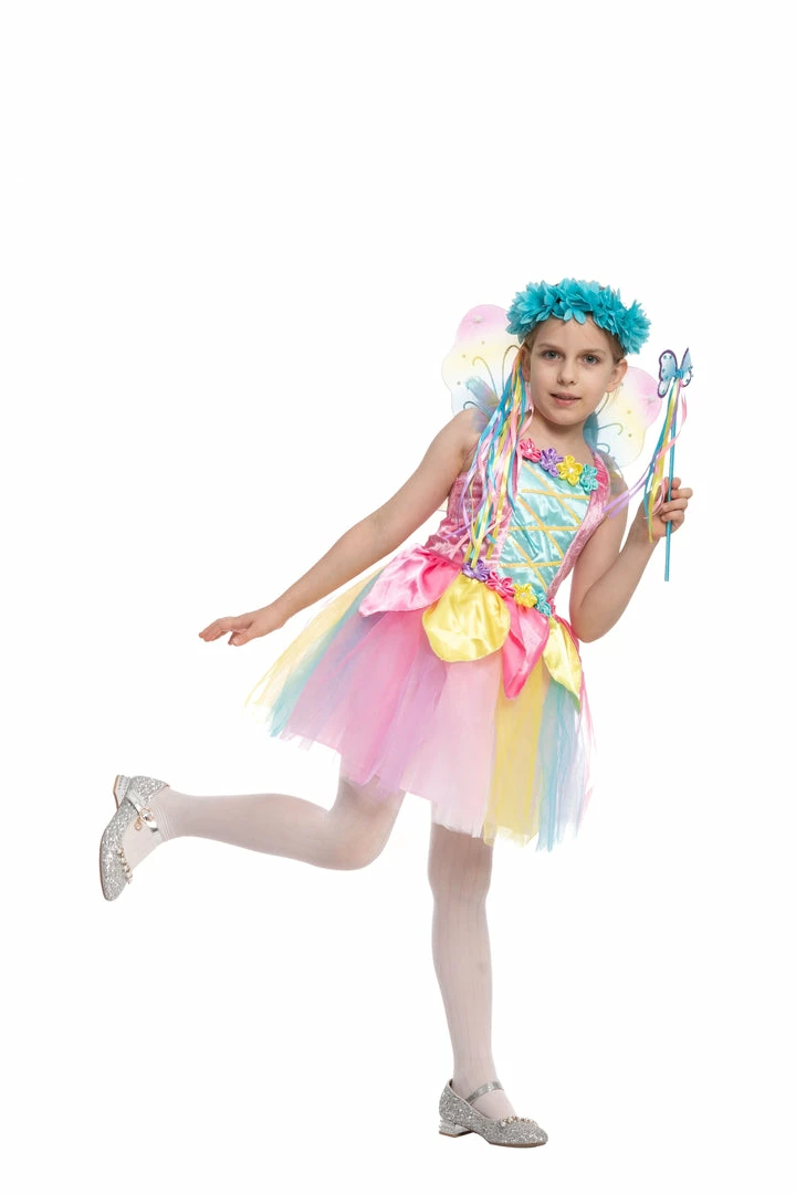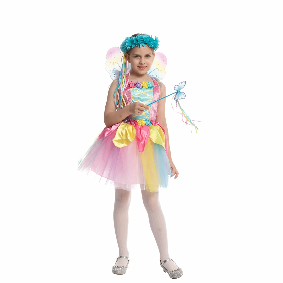 - Includes one colorful dress, pair of wings, one headband, one fairy stick.