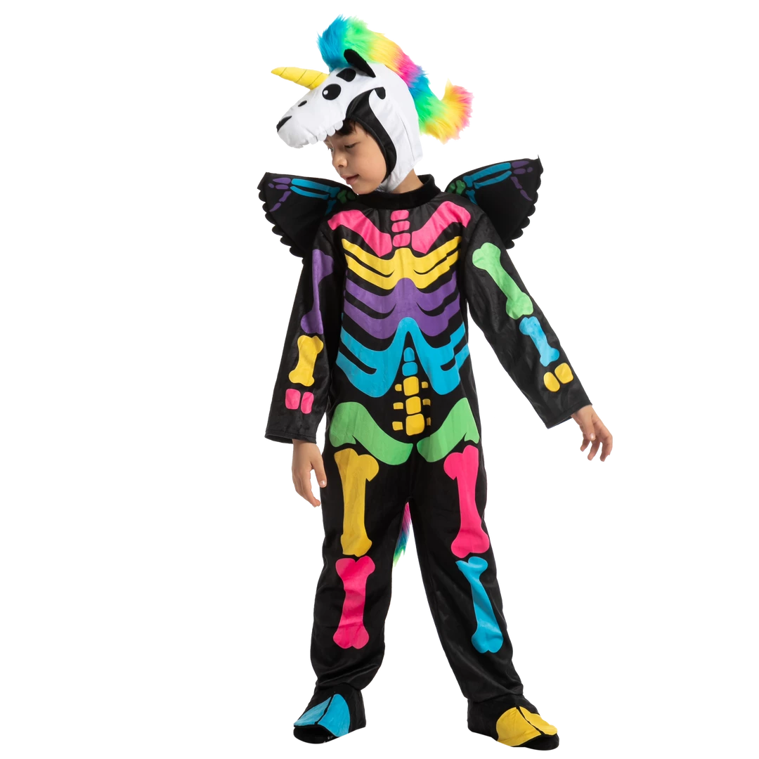 Spooktacular Creations Colorful Unicorn Skeleton Costume For Role Play Cosplay- Child