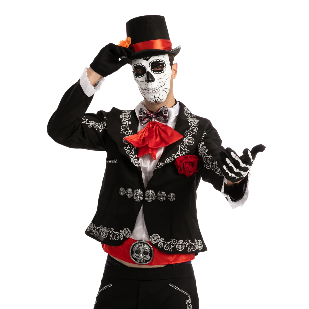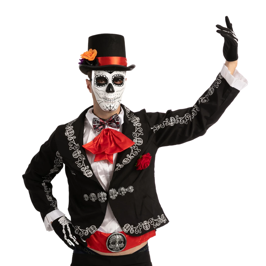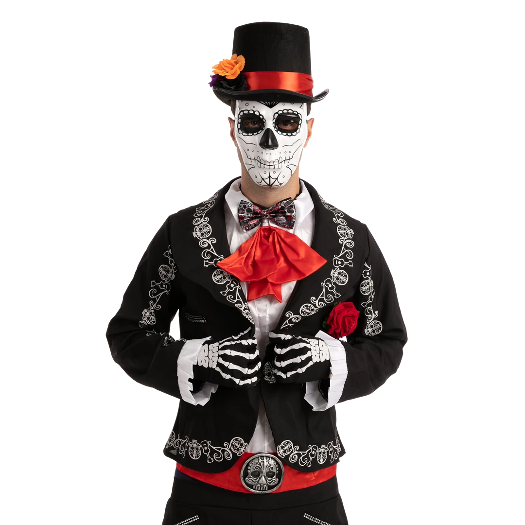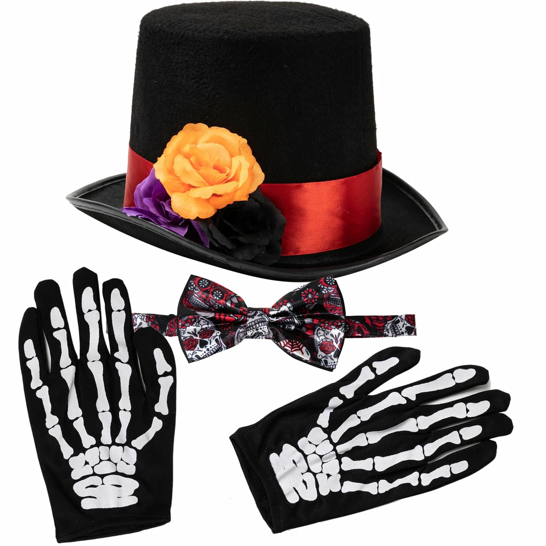 Spooktacular Creations Day Of The Dead Cosplay – Short Gloves, Men’s Hat, Bow Tie
