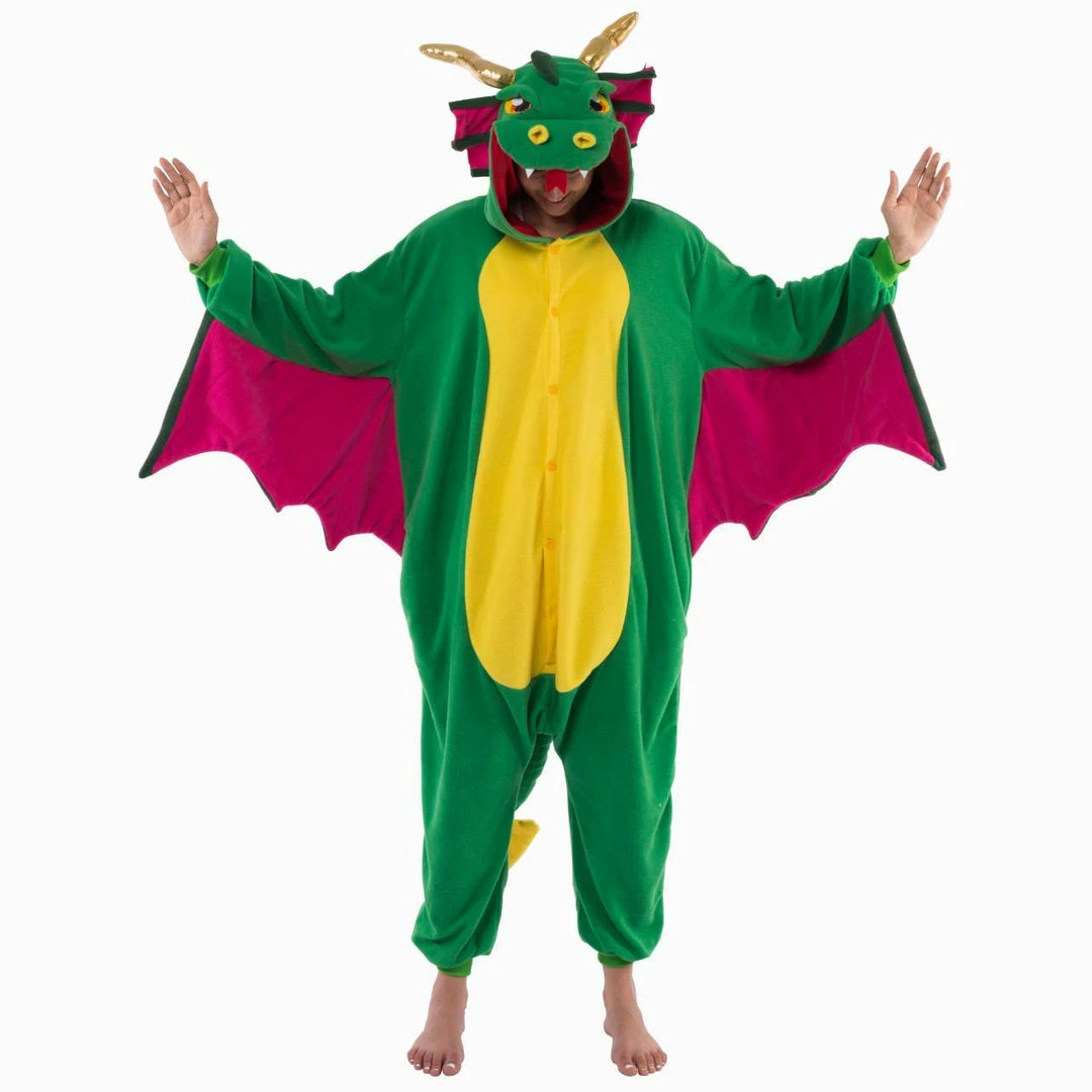 - Deluxe Version of Dragon Pajamas One Piece Plush Cosplay Animal Costume Onesie. Adult Size. Made with High-Quality Plush Fleece Materials.