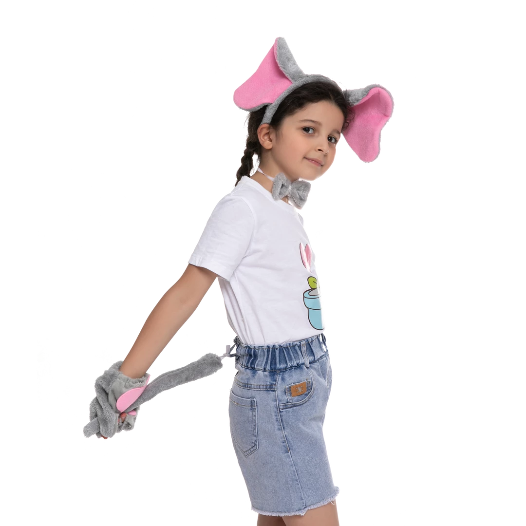 - Includes an elephant headband, bowtie, gloves, and tail to spice up your Halloween costume party.