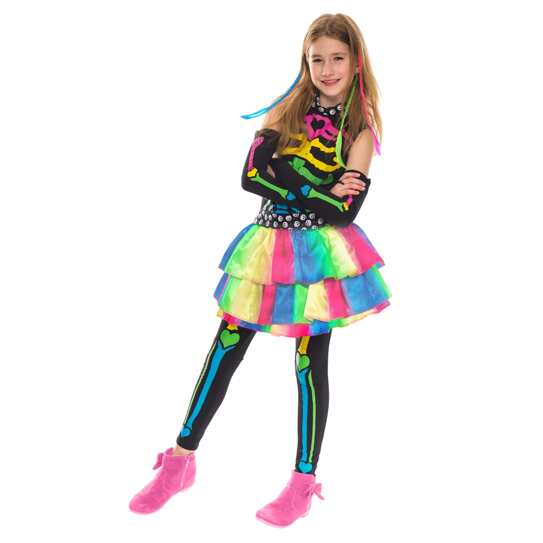 Spooktacular Creations Funky Bones Colorful Skeleton Deluxe Costume For Girls Cosplay