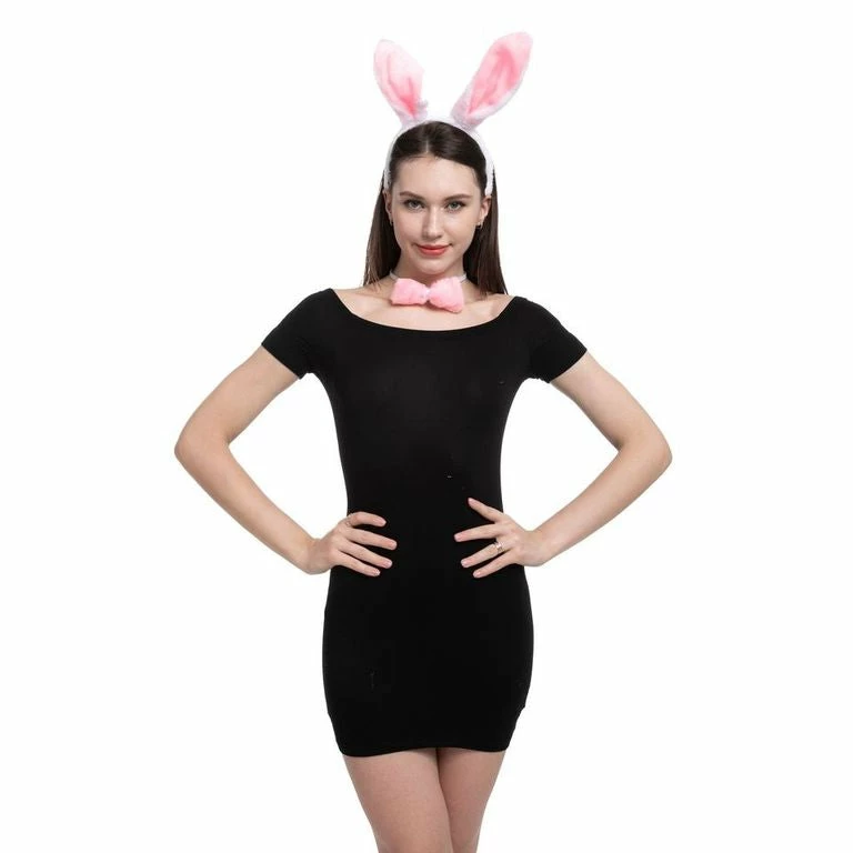- White Bunny Ears and Tail Accessories Set includes fluffy bunny ears headband, bow tie, bunny tail, in a very cute and adorable style. Fits adult and kids.