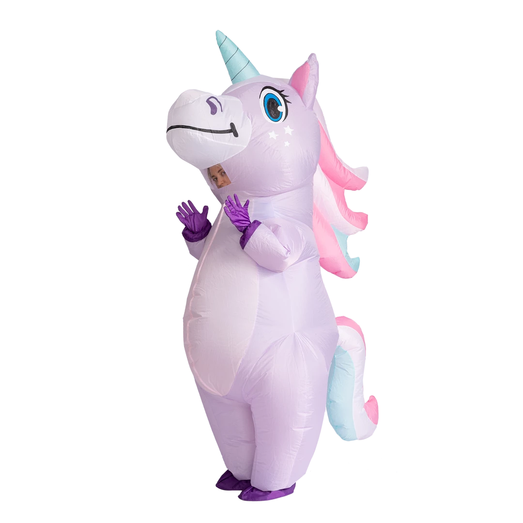 - Includes one Purple Unicorn Full Body Inflatable Costume, and an air pump.