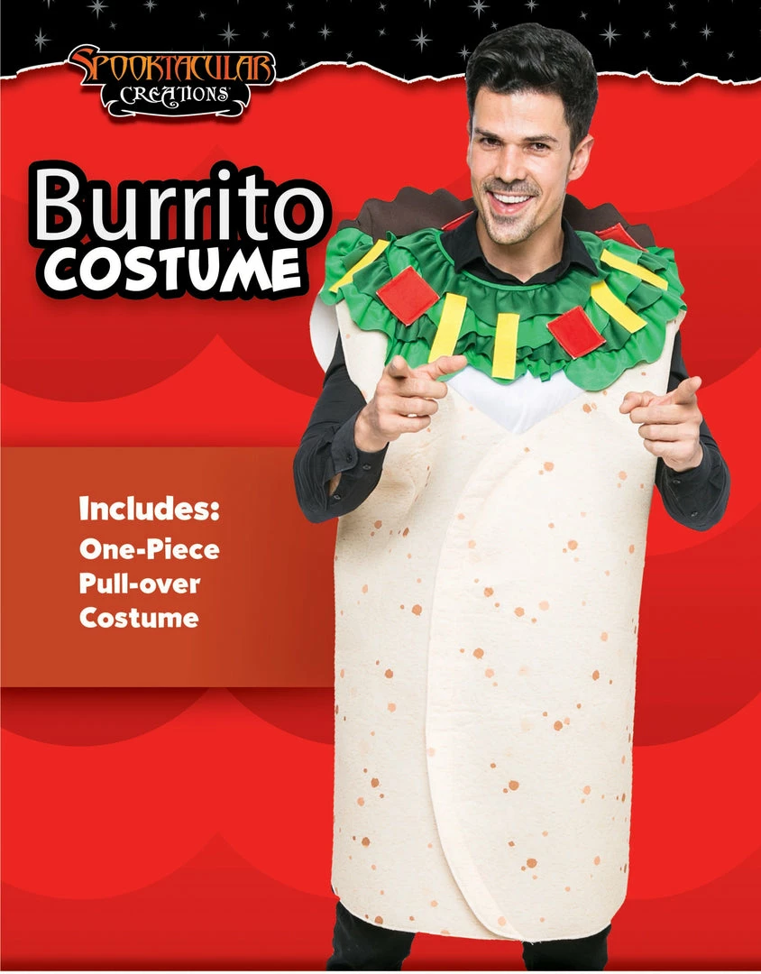 - Unisex Taco Outfit Halloween Costume Deluxe Set. Realistic Looking, Super Durable. Superior Quality. 100% Polyester.