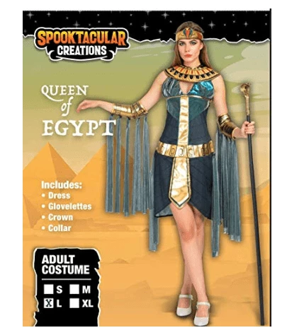 - Sexy Dark Egypt Queen Costume Includes Egyptian Dress, Collar, 2 Glovettes, and Egyptian Headpiece. Pharaoh Cobra Staff NOT INCLUDED.