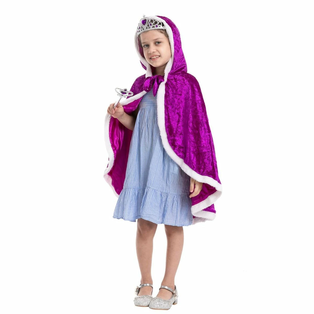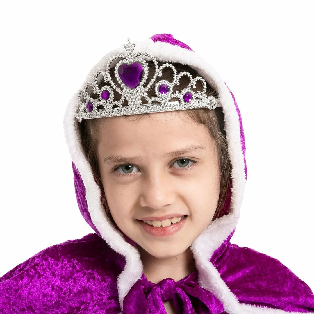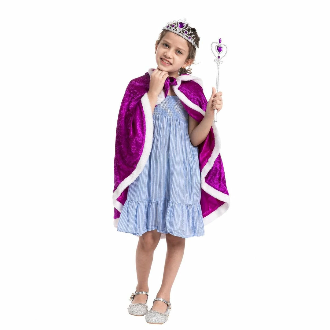 - Our 3 Pack Princess Costume Accessories Set (Purple) includes one self tie closure fluff cloak, one tiara/crown, and a wand.