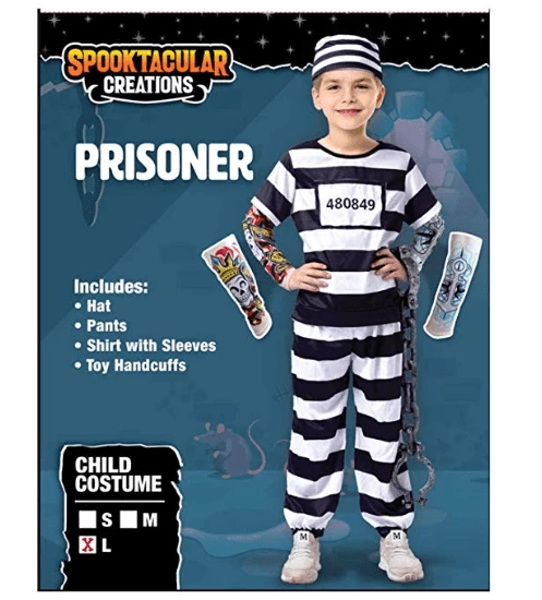 - Machine Wash. Child Safe: Safety Test Approved. Easy to Wear, Unique Halloween Costume for Prison Attire Themed Parties. Add Lots of Fun to Your Halloween Party and Other Theme Activities!