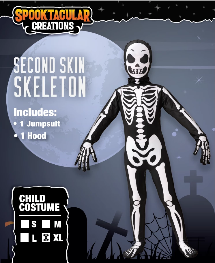 - Skeleton Costume includes One Jumpsuit w/ Hood