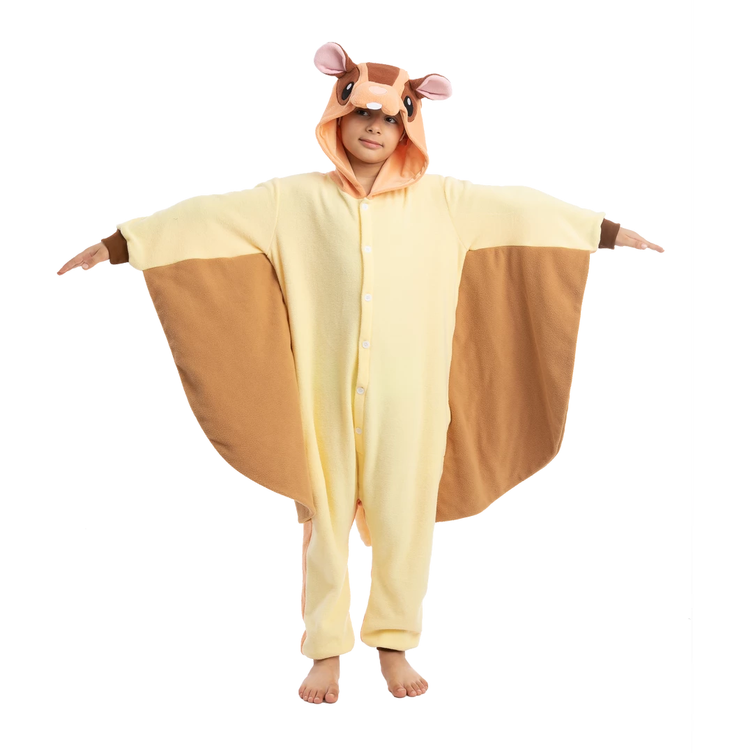 • Deluxe version of Flying Squirrel Pajamas one piece plush cosplay animal costume onesie. Child size. Made with high quality plush fleece materials.
