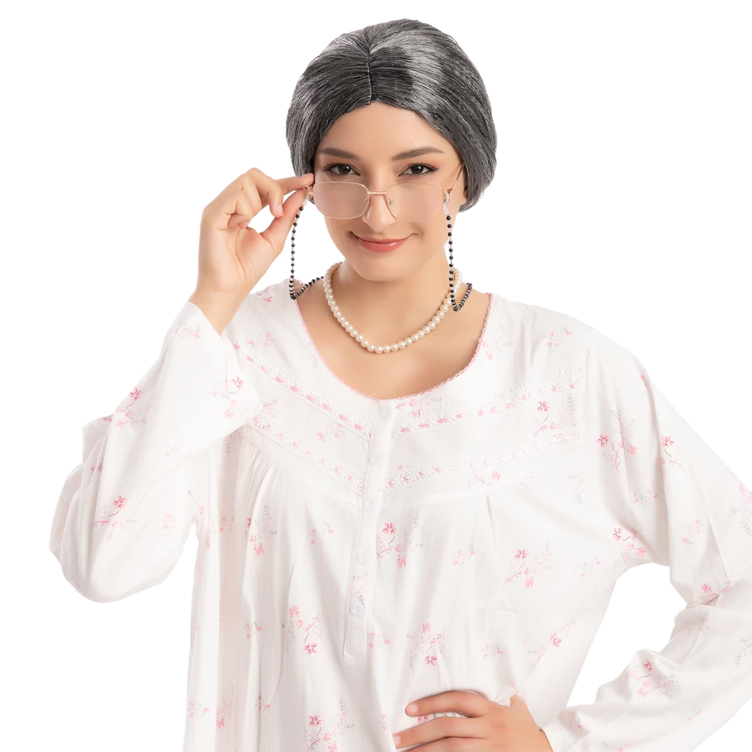 • One size fits all. This grandma wig is suitable for both adult female and children.