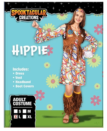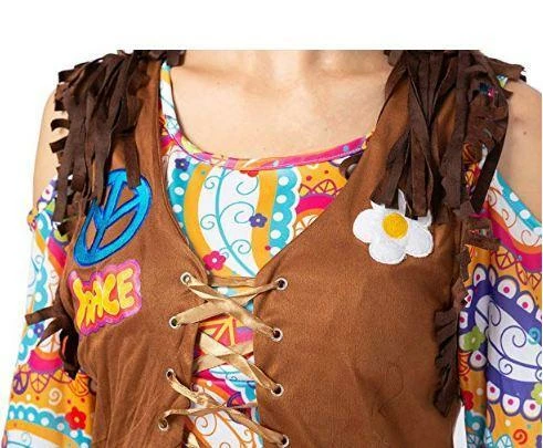 - Hippie Sixties Outfit For Women includes long hippie dress, hippie fringe vest, hippie headband and boot covers.